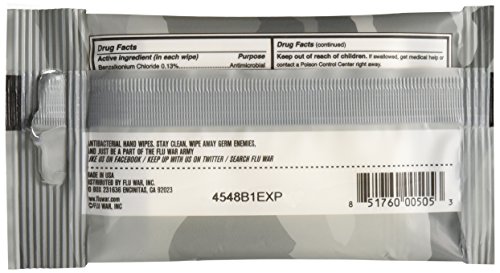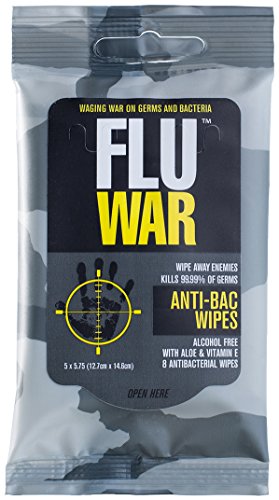 FluWar Antibacterial Wipes eliminates bacteria year round, even when it’s not flu season. These antibacterial wipes act as a first line of defense and is a great alternative to antibacterial soap, spray, or a foaming cleaner. These antibacterial wipes will kill 99.99% of germs found on surfaces or found on your body. It’s effective at killing pathogens that cause the stomach flu, skin infections and other respiratory infections. Packaged in a re-sealable travel pack which includes 8 wipes, with 12 travel packs included, you can store these wipes almost anywhere imaginable. The active ingredient in FluWar is Benzalkonium Chloride (BZK). It’s alcohol free, and contains aloe and Vitamin E, which moisturizes skin after each use. Unfolded, each wipe measures 6" x 7.75" and because they are individually wrapped, they are airport friendly.