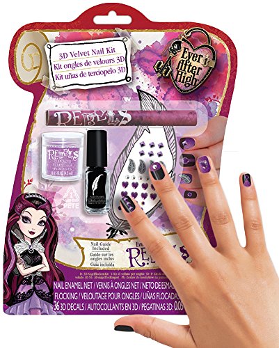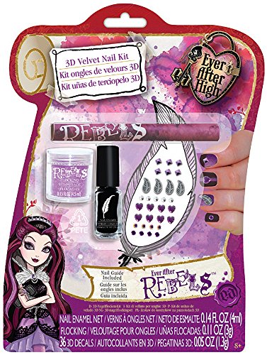 -. Binding : Toy -. Brand : Ever After High -. EAN : 0787909321169 -. Feature : Ever After High is a companion line to the popular Monster High franchise based upon characters from fairy tales and fantasy stories. / Create your own nail design using the included materials / Give your nails a "Rebel" look that is inspired by the Ever After High characters / Includes: 1 bottle of nail color, velvet nail flocking, 32 3D charms, and a design guide / For ages 8+ -. IsAdultProduct : 0 -. Label : Fashion Angels -. Manufacturer : Fashion Angels -. Model : 32116 -. MPN : 078I09321Z9 -. PackageQuantity : 1 -. PartNumber : 078I09321Z9 -. ProductGroup : Toy -. ProductTypeName : TOYS_AND_GAMES -. Publisher : Fashion Angels -. Studio : Fashion Angels -. Title : Ever After High "Rebel" 3D Velvet Nail Kit -. UPC : 787909321169
