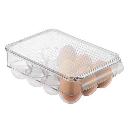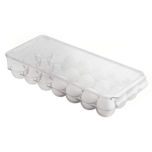 Keep eggs protected and organized with the InterDesign Egg Holder. Made of sturdy plastic, this unique item holds up to 14 eggs and features a lid and built-in handle.
