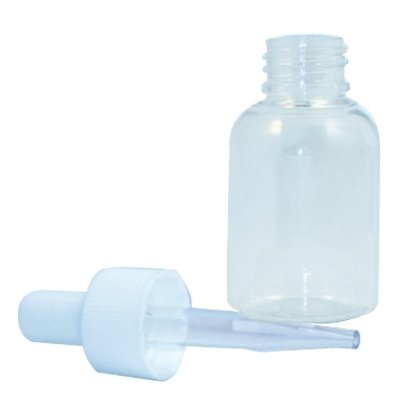 -. Feature : 1 oz. clear bottle with dropper cap.