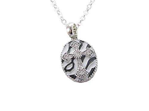 -. Feature : Approximately 18 Inches in Diameter Silver Plated Chain Necklace / Hypo-Allergenic, Lead Compliant in all 50 States, and Silver Plated / Silver Plated Black and White Enamel Zebra Pattern Oval Cross Charm Adorned With Stunning Clear Crystals / More Great Clear Crystal Cross Charm Jewelry available, Complete the full collection! / Made in the United States of America