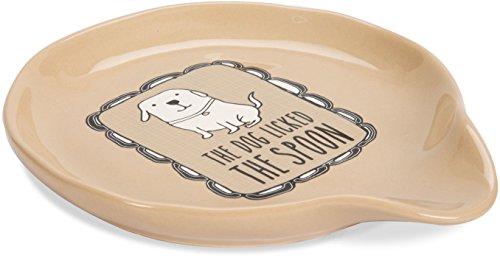Perfect place to rest the spoon after stirring with a curved lip to hold the spoon in place