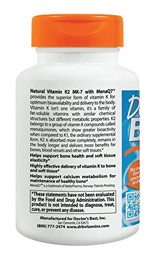 -. Binding : Health and Beauty -. Brand : Doctor's Best -. Label : DOCTOR'S BEST -. Manufacturer : DOCTOR'S BEST -. PackageQuantity : 1 -. ProductGroup : Health and Beauty -. ProductTypeName : HEALTH_PERSONAL_CARE -. Publisher : DOCTOR'S BEST -. Studio : DOCTOR'S BEST -. Title : Natural Vitamin K2 - MenaQ7