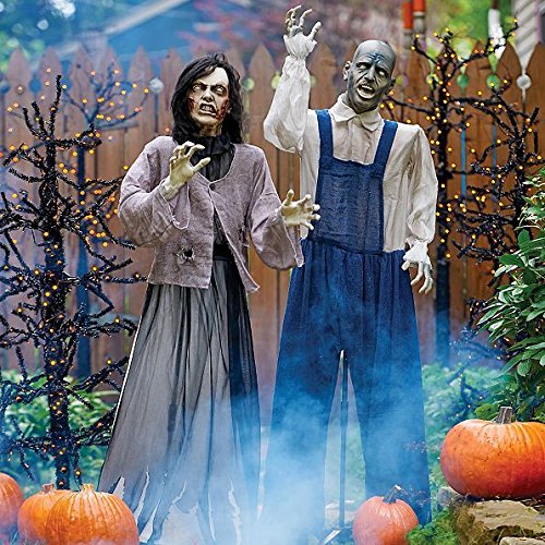 -. Color : grey -. EAN : 0725873814140 -. Feature : Take your Halloween decorations to the next level with this frightening duo. Frightening Male & Female Zombie Animated Halloween Props. Perfect Indoor / Outdoor Sound Activated Decoration by the Entryway or Yard. / Nothing says All Hallow's Eve like lifelike, life-size zombies. This woman and man have come back from the dead and are ready to be positioned in your yard to frighten trick-or-treaters. / Female Zombie's eyes light up and her head turns side to side. Male Zombie jerks his arms up and down as if he were walking your way. / Both Halloween decorations have realistic facial features, are sound activated (they both make creepy moaning sounds!), and have poseable arms. Looking for Halloween decorating ideas? Flank a male and female zombie in your entryway to get guests in the Halloween spirit. / Dimensions: Male: 24"W x 12"D x 63"H, Female: 20"W x 16"D x 61"H -. Label : Gramercy Home -. Manufacturer : Gramercy Home -. ProductGroup : Lawn & Patio -. ProductTypeName : OUTDOOR_LIVING -. Publisher : Gramercy Home -. Studio : Gramercy Home -. Title : Frightening Male & Female Zombie Animated Halloween Props | Perfect Indoor / Outdoor Sound Activated Decoration by the Entryway or Yard -. UPC : 725873814140