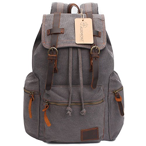 -. Title : Vintage Canvas Backpack Outdoor Hiking Travel Rucksack 19L