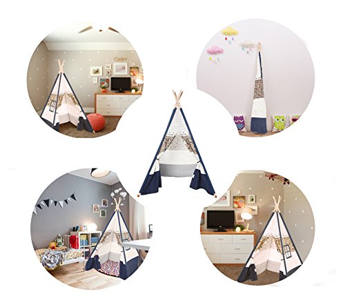 Product Description Kids Indian Teepee Play Tent Canvas Playhouse with window . Materials: Made from 100% soft durable and sewn well cotton canvas Kids Teepee Tent Size: side length-43.3", top height-59", pole length-70.8". Teepee Weight: -8.3 Lb. PERFECT FOR GIFT The best choice for gifts - Perfect gift for Mom, Dad, Grandparents, Teachers, Office Co-workers, Wedding, Birthday, Valentine day, Anniversary, Christmas and DIY Kids Artwork.