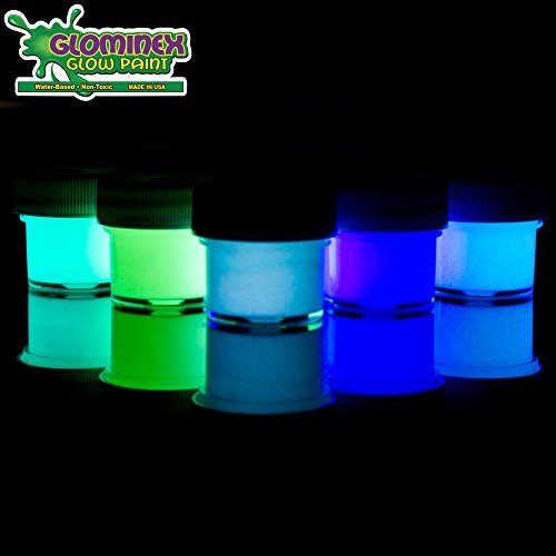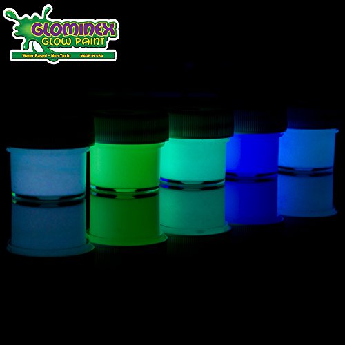 Glominex AT955 Ultra Glow in the Dark Paint, Glow Dark, Glow-in-the-dark Paint, Glow Paint comes in Assorted Color and set of 5