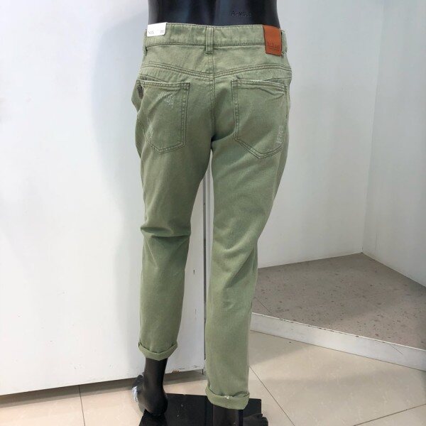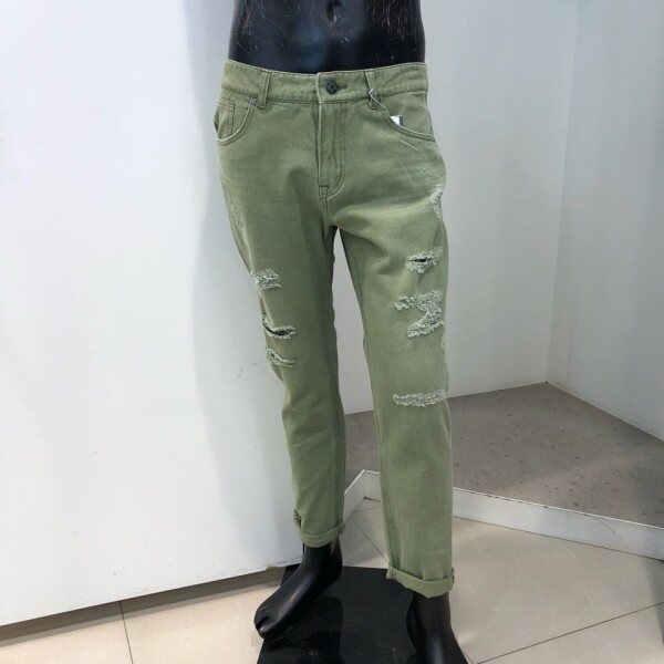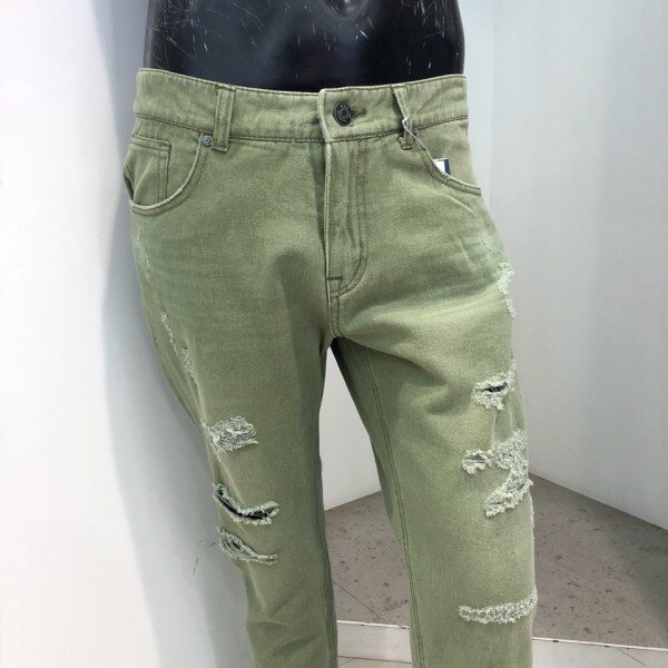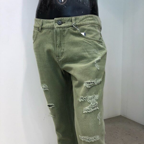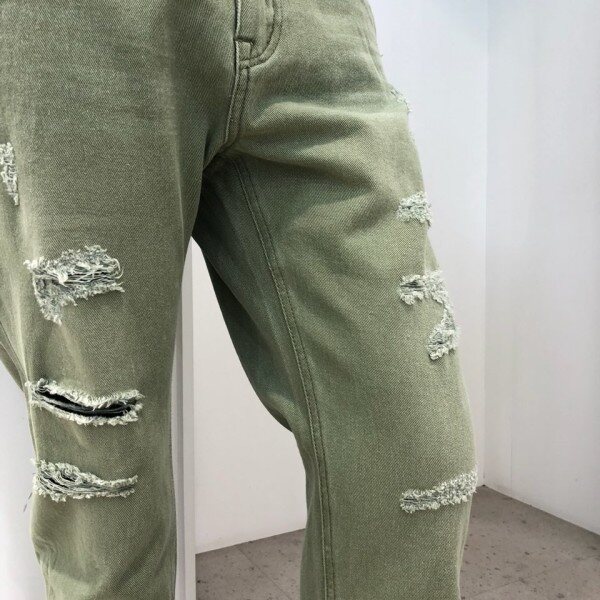 18 S/S 여름 신상.남진 카키컬러 구제 크롭 테이퍼드핏 데님 팬츠 입니다. 스톤워싱으로 밝게 내린 데님 팬츠로, 은은한 캣브러쉬와 디스트로이드를 섞어 시원한 워싱감을 잘 살린 디자인 입니다. 심플한 데님셔츠나 티셔츠와 매치하여 빈티지하게 연출 할 수 있는 디자인 입니다.