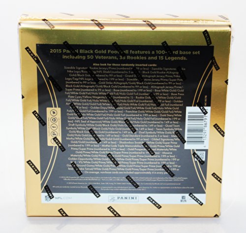 2015 Panini Black Gold Football Hobby Box (2 Packs of 5 cards) - 2 Autographs, 2 Memorabilia, 2 Manufactured Metal Logos, 2 Shadowbox inserts, 2 Shadowbox Base Cards) (Release date 01/20/16)