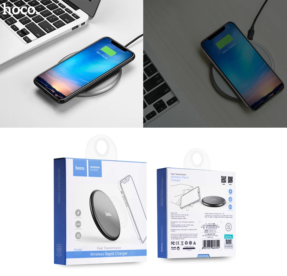 HOCO CW3A Qi Wireless Charging Pad Rapid Roundness Charger foru0026nbsp;iPhoneu0026nbsp;8 8 Plus Xu0026nbsp;Samsungu0026nbsp;S8