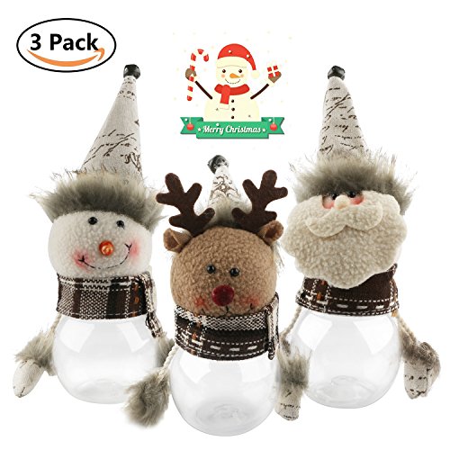 Christmas Candy Jar Set of 3, Santa Claus Snowman Elk Clear Plastic Xmas Candy Container Cute Christmas New Year Decoration