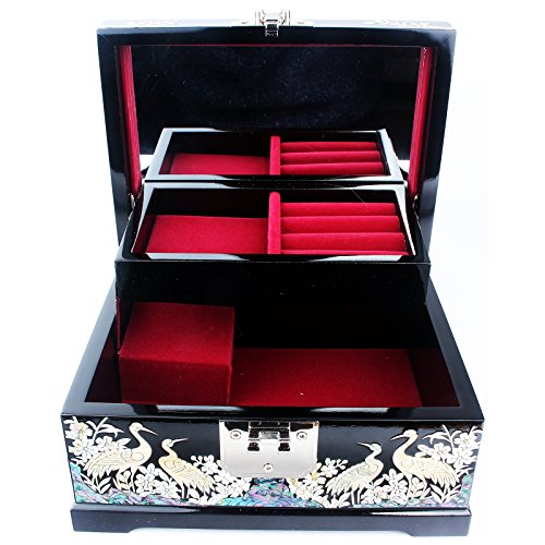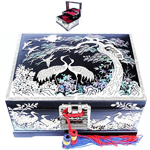 Jewelry Boxes Organizers Music Boxes 2 Darwers Mother of Pearl Gift Items LM35Black