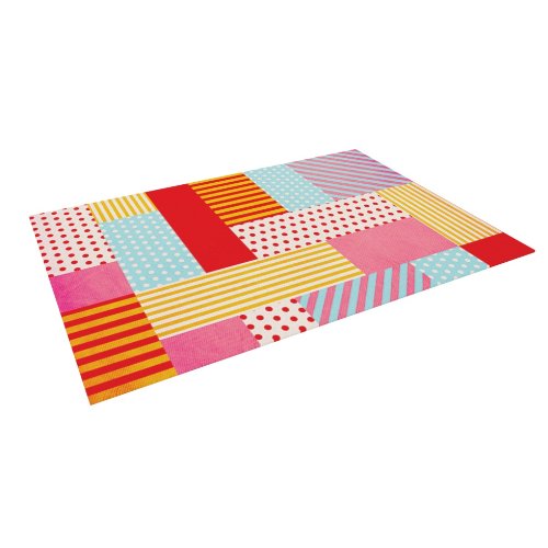 Kess InHouse Louise Machado "Geometric Pop" Red Yellow Indoor/Outdoor Floor Mat, 4-Feet by 5-Feet