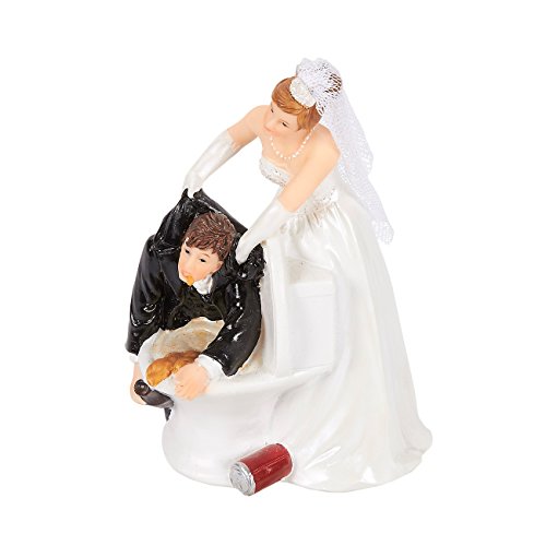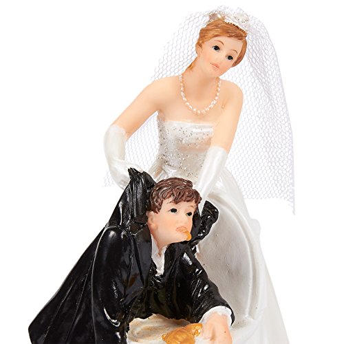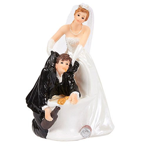 Wedding Cake Topper - Bride and Puking Groom Figurines Holding Beer - Fun Wedding Couple Figures for Decorations and Gifts - 3 x 4.7 x 2.7 Inches