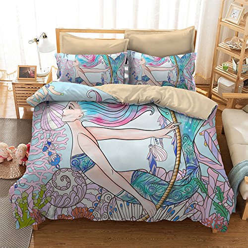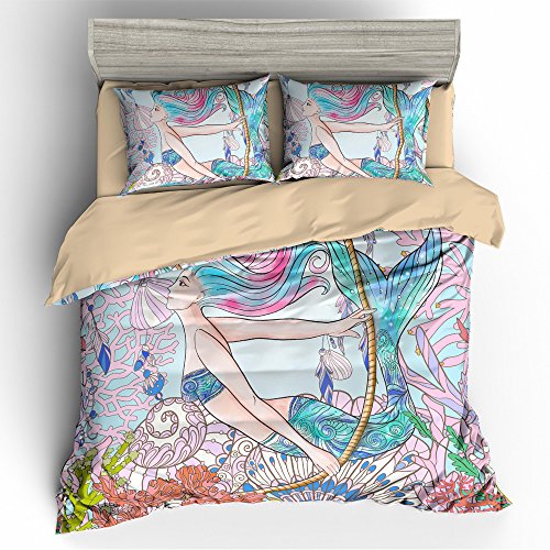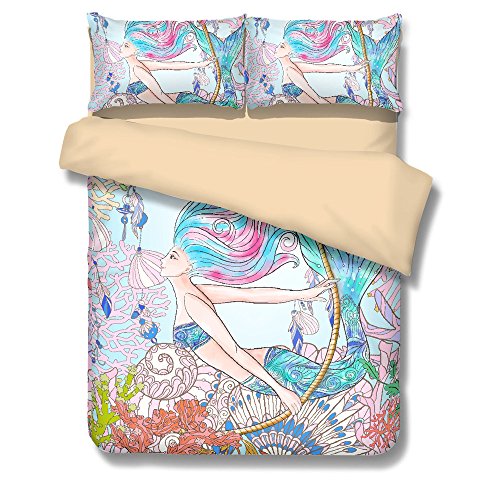 (BOMCOM)/Bedding Bath/Bedding/DIRECT FROM USA/BOMCOM 3D Digital Printing Hand Drawn BOHO Mermaid Swimming in Underwater World 3-Piece Bedding...