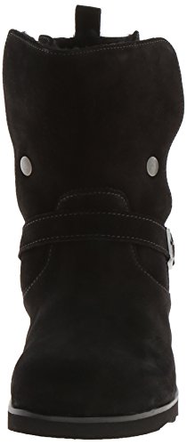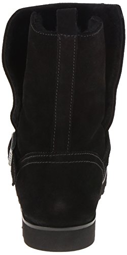 Round-toe ankle boot featuring split shaft with snap closure and soft faux-fur lining