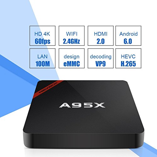 -. Feature : LATEST ANDROID 6.0 OS: Android 6.0 Marshmallow raises the bar in performance and usability with a slick lag-free interface, compatibility with the latest Android applications such as YouTube, Skype and many games, and support for more USB devices / INCREDIBLE PERFORMANCE: A95X R1 is a palm size Android 6.0 TV Box powered by the newest Quad-core Cortex A7 1.5GHz 32bit chipset, and a Penta-Core HD Graphics GPU. / SUPPORT 4K HD : Watch 4K VP9 and H.265 HEVC videos, It is really an extreme experience when watching movies or playing games with a 4K resolution. Not a single detail will be missing. / GREAT CONNECTIVITY: Equipped with Ethernet and 2.4GHz WiFi, you will never have to worry slow download speeds or running wires which makes installation a breeze. / PRACTICAL BOX: Plug and play, all you need is to connect with your TV via the provided HDMI Cable, and choose the network for the smart box. Then the great Android box can be used as a media center or also can be used as an entertainment box with your family