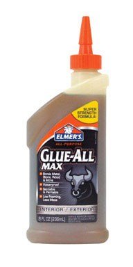 Elmer's 8 oz. Glue-all Max. All purpose glue.-Bonds metal, stone, wood, and more.-Waterproof.-Sandable and paintable.-Low foaming.-Less mess.-Designed for interior and exterior use.-Super strength formula.