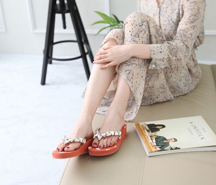 商品名:サンダル レディース トングサンダル ビジュー 厚底 2018 春 ファッション 靴 婦人靴