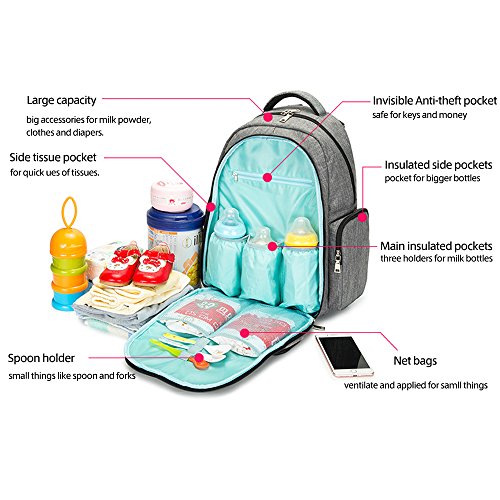 Studio : SUNVENO Publisher : SUNVENO Binding : Baby Product Product Description 1.Separate bottle holder There have 3 bottle holders in the front of the bag. Separated from other baby items. These 3 holders with insulation layer of tin foil can keep warm for about 2-4 hours. 2.Zipper Openings There's an opening in the back of the bag with a waterproof pocket. You can easily put things in the bottom of the bag. Wet cloth or diapers can be put in the waterproof pocket separated from dry cloths and diapers. 3.Carry ways You can use this bag as backpack and handbag. Suitable for occasions like shopping, restaurant, traveling etc. It's comfort to carry all day with board backpack straps. Leaving your hands free so you can focus on what matters most.Good bag for mom and papa.