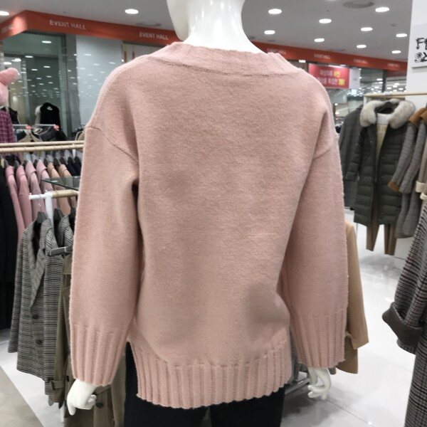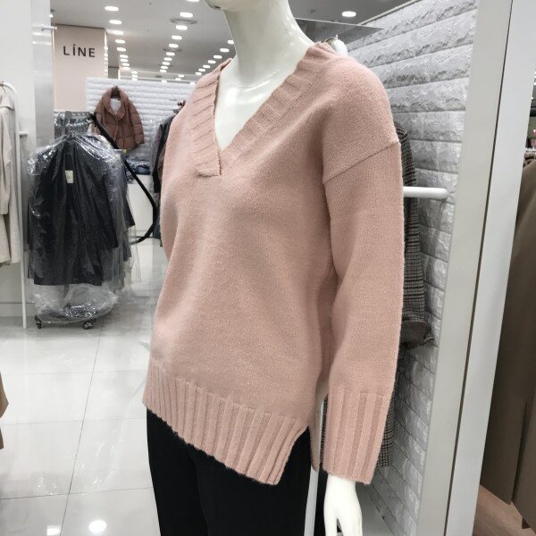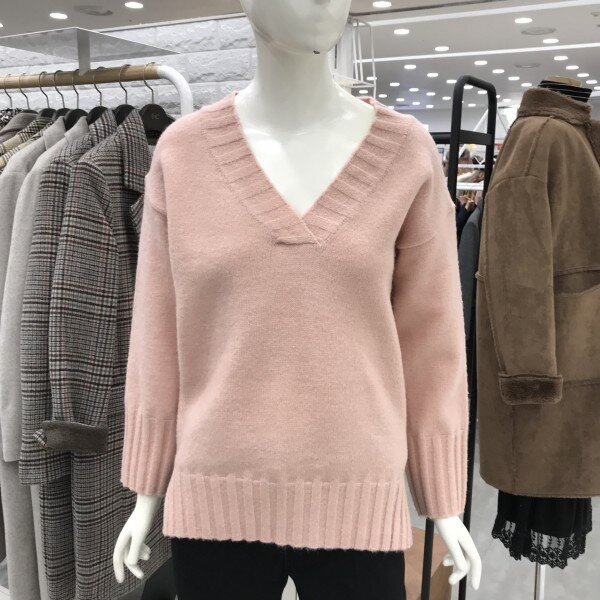 깊은 브이넥에 포근한 기본 니트입니다원싸이즈로 신축성 좋아요
