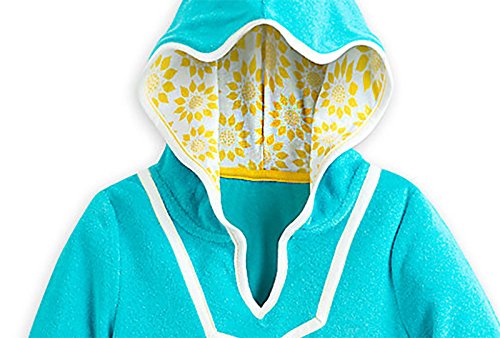Coverup features embroidered flower detailing Anna and Elsa applique, white piping trim, lined hood with contrast floral print, dolman sleeves. Body: 80% cotton / 20% polyester, hood lining: 100% cotton soft terry