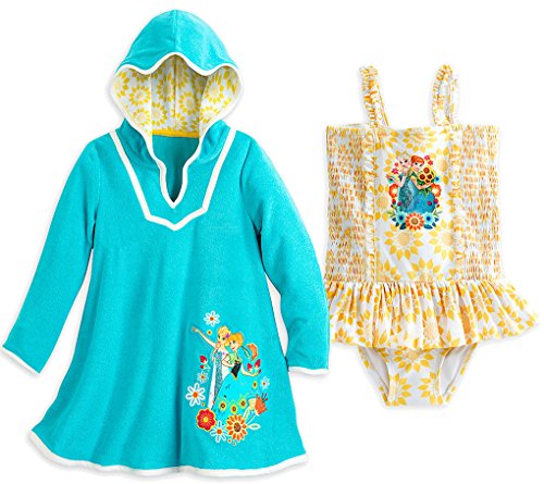 Set includes 1 Frozen one-piece swimsuit and 1 hooded coverup with UPF 50+ (built in UV protection for safer fun in the sun)