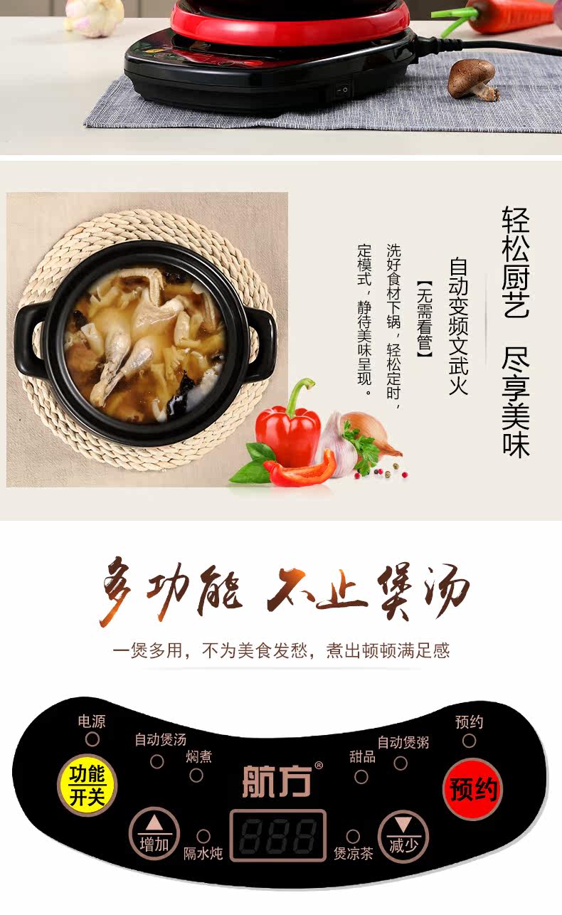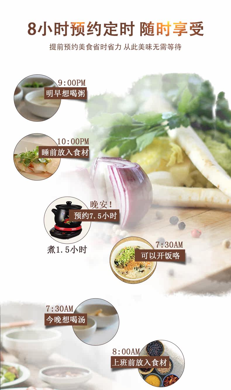 功能: 煮粥 煲汤 炖 焖 酸奶 米饭