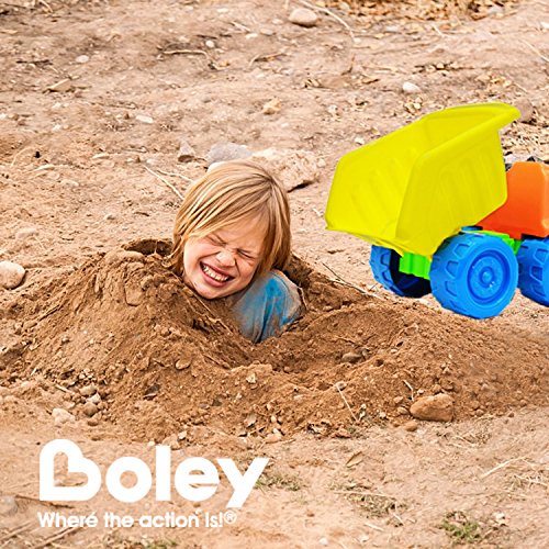 For all the fun and entertainment of construction, there is the Boley's large dump truck. Your child can enjoy playing with it indoors or outdoors. With its rugged plastic construction, the dump truck toy is durable and long lasting. For added effect, the dump truck bed tilts just like the real thing. It encourages learning and discovery through active, social and creative play.Feature