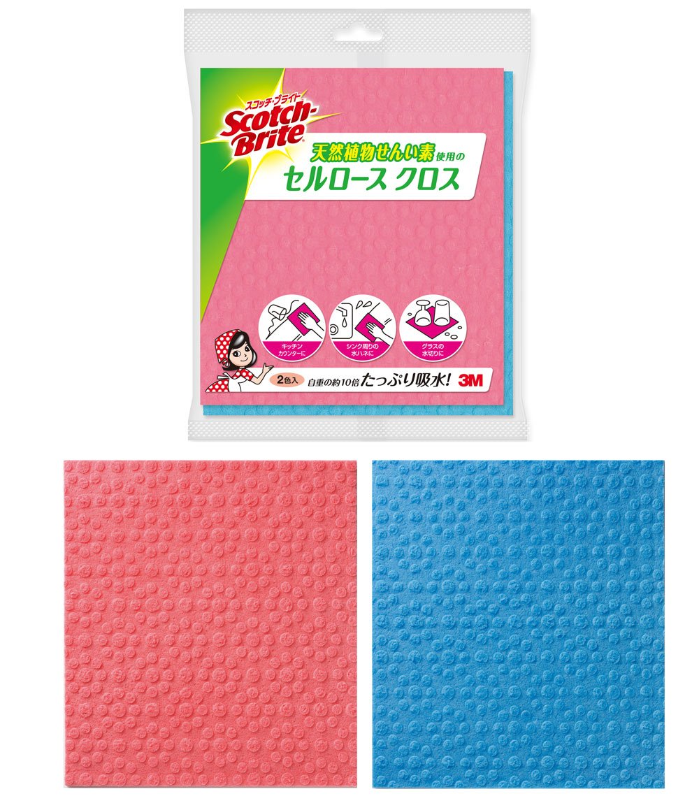 "Scotch · Bright Cellulose Cross Pink & Blue 2 Color Input" is a kitchen wiping cloth using cellulose (natural plant senna).
