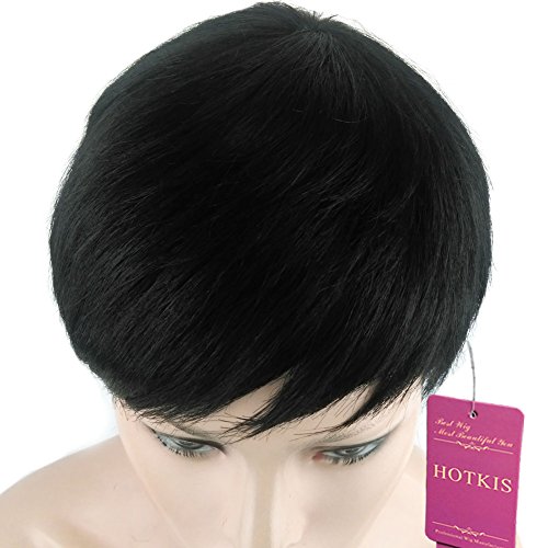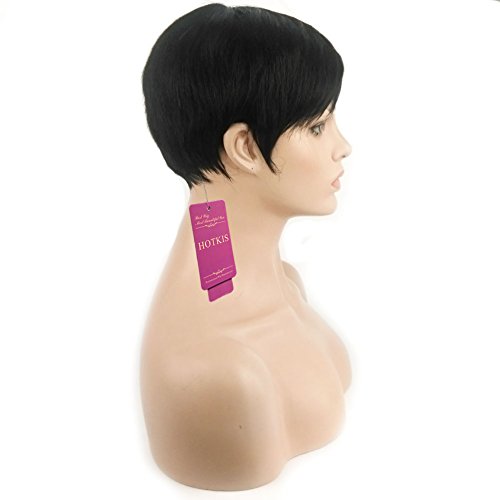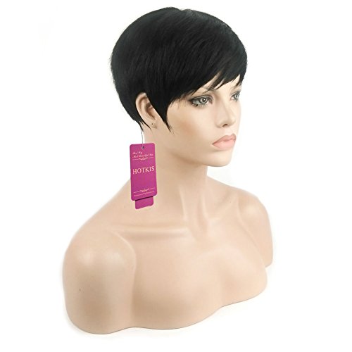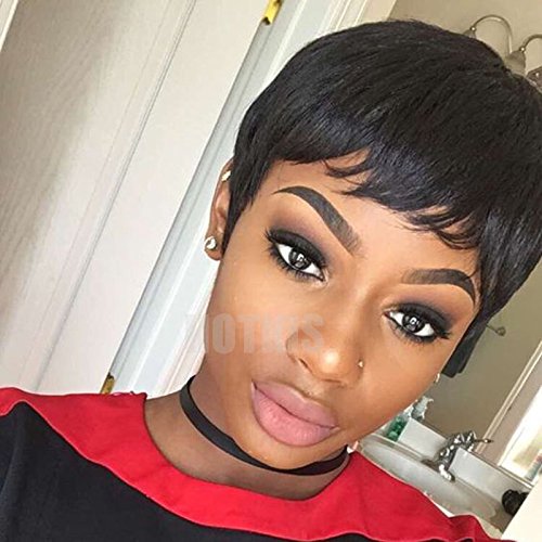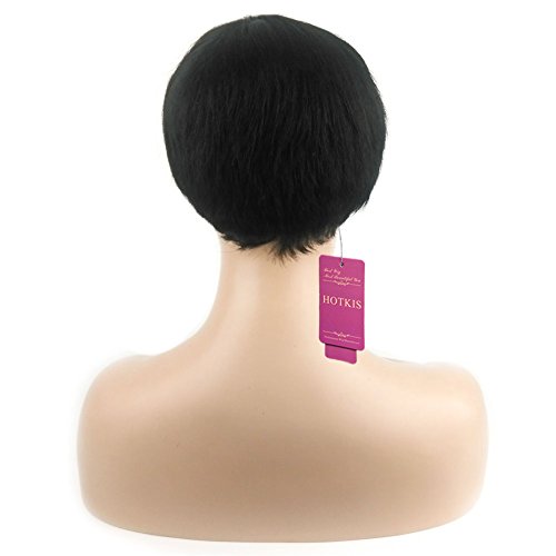 HOTKIS 100% Human Hair Short Wigs Brazilian Hair Glueless Short Black Wigs for Black Women (Pixie Cut-1b#)