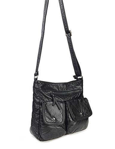-. Brand : Hoxis -. Department : womens -. Feature : Material: High quality washed synthetic vegan leather / Top zipper Closure; Exterior features silver-tone hardware ,2 front magnetic closure pocket and 1 back zipper closure pocket / Interior features 2 slip pockets and 1 zip pocket / Proximate Dimensions: 10.2(L) x 9(H) x 3.5(W)inches; / Notice: Please allowed slight colour deviation due to different displays. -. ProductGroup : Shoes -. ProductTypeName : HANDBAG -. Size : Medium -. Title : Hoxis Lightweight Multi Pocket Washed Soft CrossBody Bag
