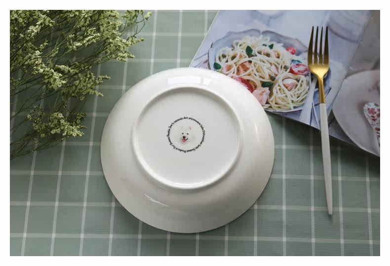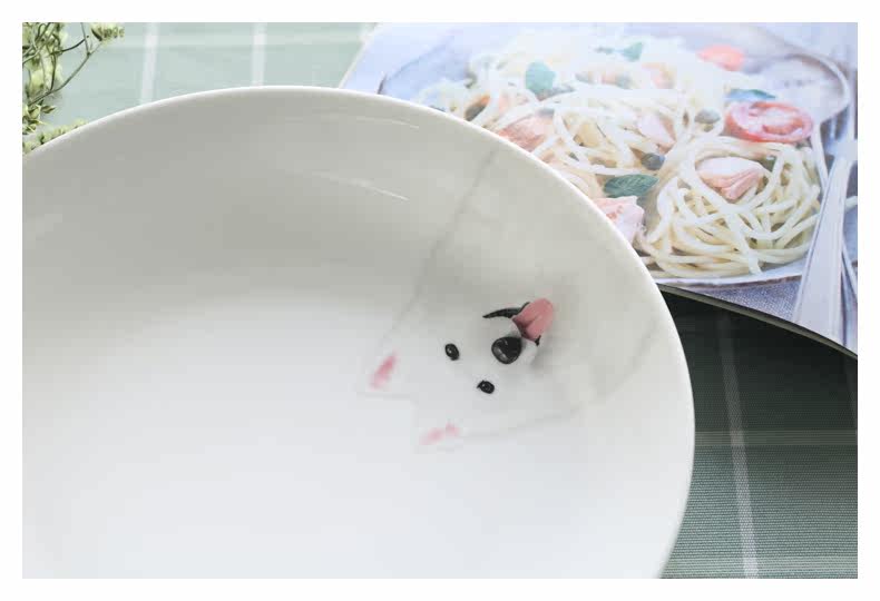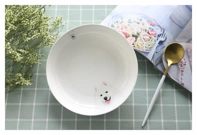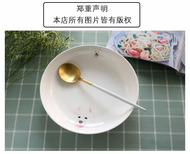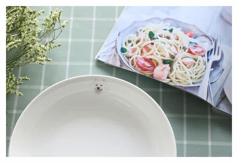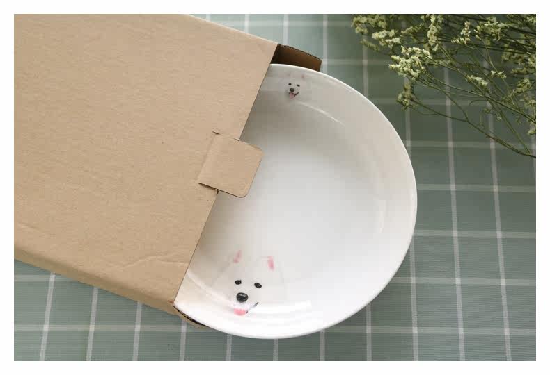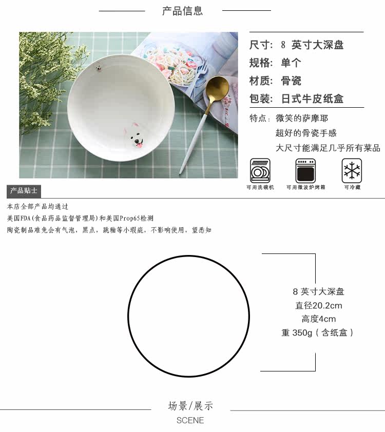 微笑天使萨摩耶系列圆形大果盘家用菜盘子深盘子萌宠盘微波炉适用
