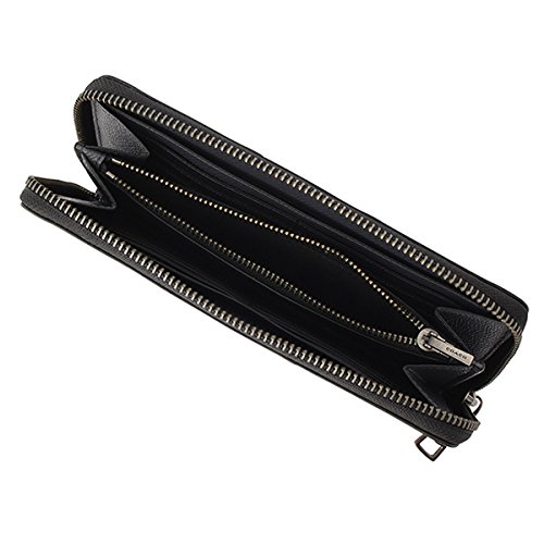 上品なレザーに高級感のあるデザインが魅力の長財布です。定番のシグネチャー柄が施され、レザーとの相性も抜群。収納力もたっぷりあるので、カードが多い方でも安心してお使いいただけます。