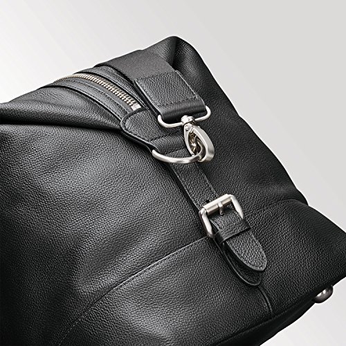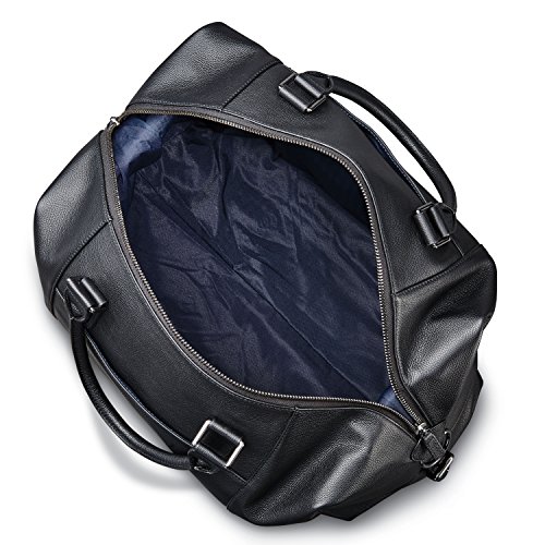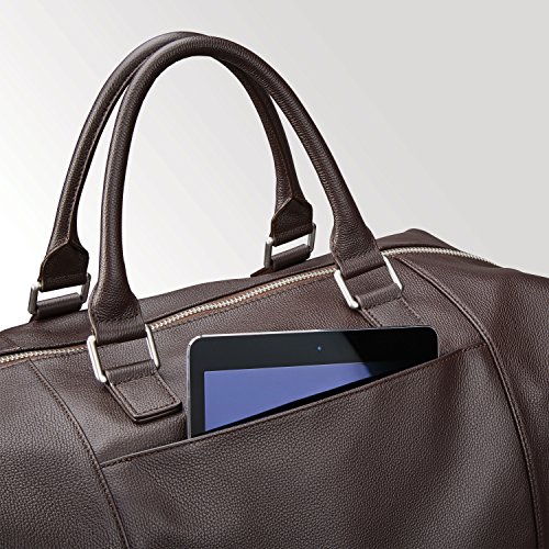 Studio : Samsonite Publisher : Samsonite Product Description Classic doesn't have to feel common. The timeless silhouettes in our Men's collections are reinvigorated in full-grain pebble and smooth leathers. Each bag is thoughtfully designed to be as versatile in functionality as they are in style. Right-sized and compact, the Weekender featured a spacious interior with organization for smaller essentials, a must-have for overnight or a weekend getaway.? Front and back pockets conveniently store small accessories and tech without unzipping the main compartment.? Pass-through sleeve with zip bottom, accommodates most luggage handles for seamless, on-the-go travel. When zipped, this feature doubles as an additional pocket.? Removable, adjustable, leather accented shoulder strap, provides a custom and comfortable wearing experience.? Metal feet protect the leather base against wear.? Removable, leather tag with bottle opener, provides a playful on-the-go accessory.? Four accessory and one zip pocket (9.7" tablet compatible) provide interior storage and security for smaller essentials.? Dust cover is included for protection and storage.? Handle drop - 7.8 inches.? Weight: 4.1 lbs.Body Dimensions: 18.9" x 12.6" x 9.0"Overall Dimensions: 18.9" x 12.6" x 9.0" 0
