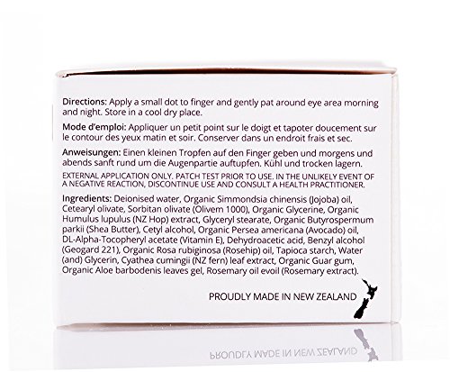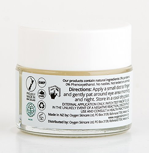 -. Feature : REDUCE effects of laughing, squinting, and frowning with this natural organic formula from Oxygen / NEW ZEALAND's Oxygen Eye Crème's skin tightening properties combat the effects of everyday living / CYATHEA CUMINGII leaf extract tightens and lifts the skin around the delicate eye area over time / APPLY morning and night around the outer eye area where wrinkles and crow's feet typically form / ORGANIC Hops, Shea, Aloe, and New Zealand Fern Leaf extract form a potent, proven combination