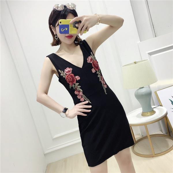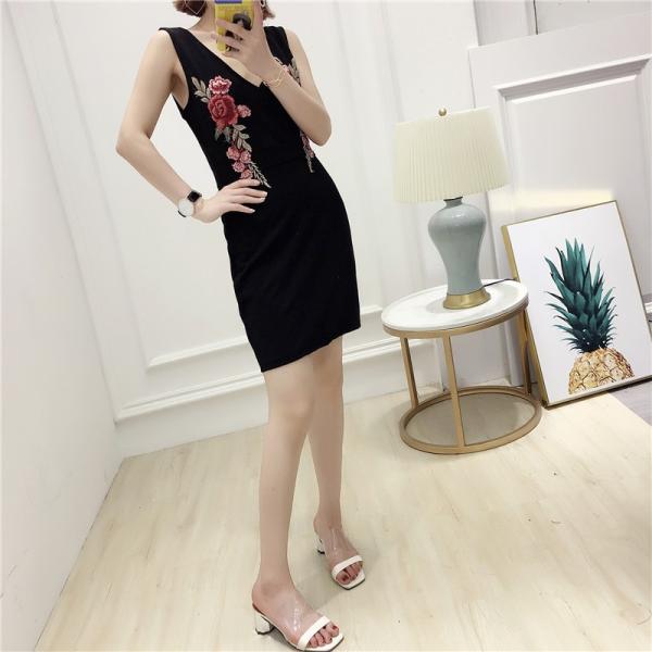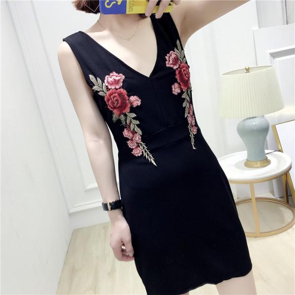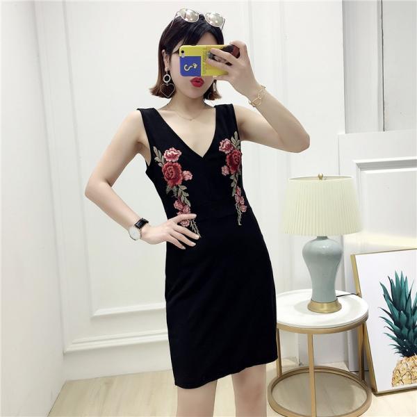 サイドの刺繍がエレガントな深Vネックワンピース♪