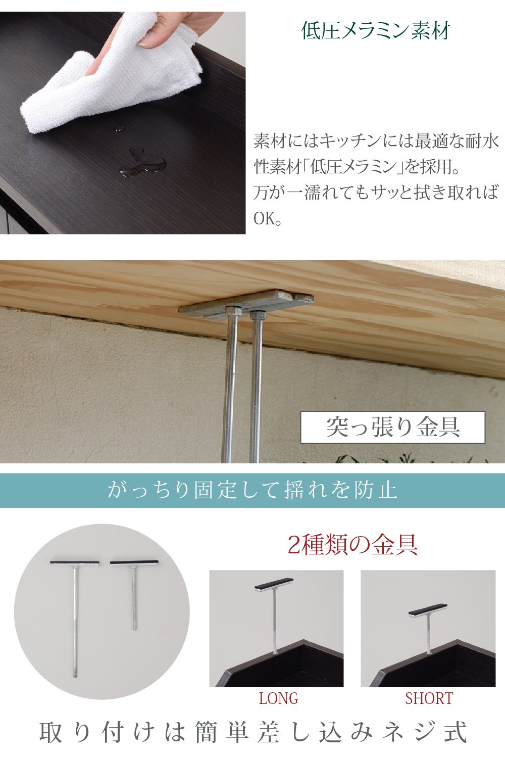 When using under the counter, two kinds of brace bars are attached according to the height