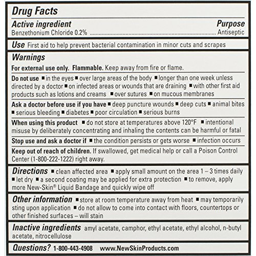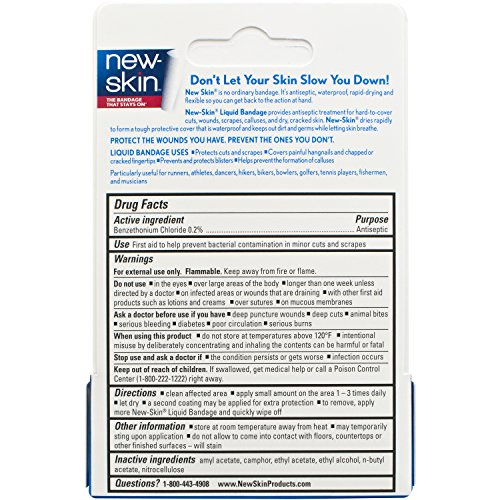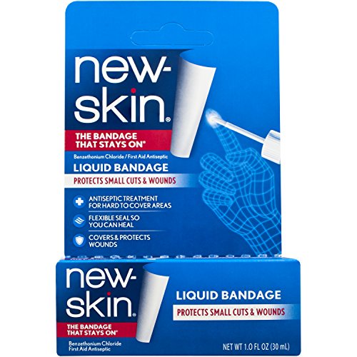 New-Skin Liquid Bandage protects cuts and scrapes, prevents and protects blisters, helps prevent the formation of calluses, and covers painful hangnails and chapped and cracked fingertips. Particularly useful for hikers, bikers, runners, bowlers, golfers, tennis players, fishermen, and musicians - Available sizes: 0.3 FL OZ (10 mL) and 1.0 FL OZ (30 mL)
