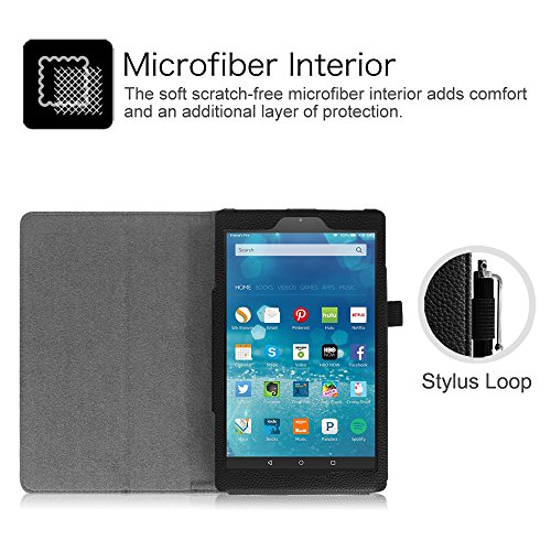 Fintie Folio Case for Fire HD 8 (2015 Model 5th Gen Only) - Slim Fit Premium Vegan Leather Standing Cover with Auto On/Off for Amazon Fire 8" HD Display Tablet (NOT FIT Fire HD 8 2016), Black