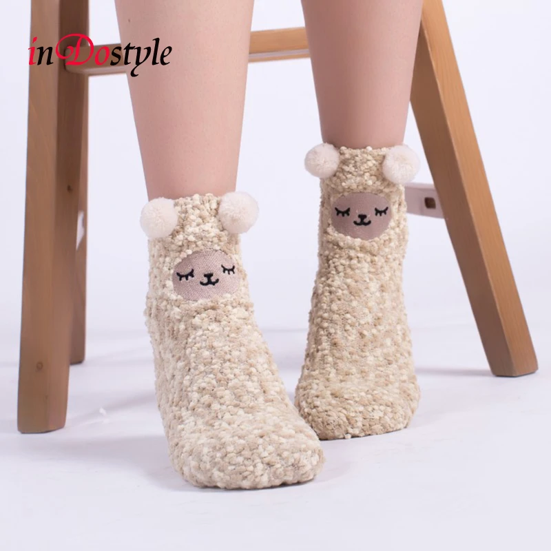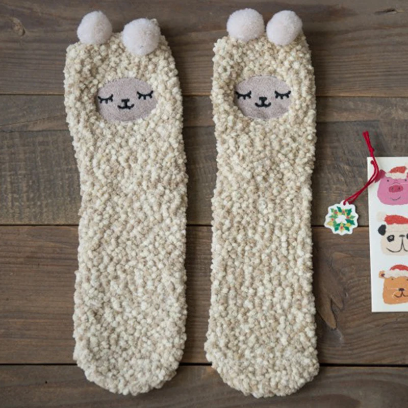 Size: one size content of main materials: 60%polyester 40%wool category: wool socks technology: napped brushed patten: cartoon Christmas elk sheep panda socks color: Santa Claus's deers sheep cat snowman panda sheep socks