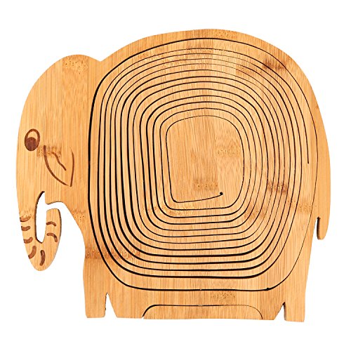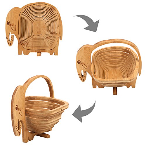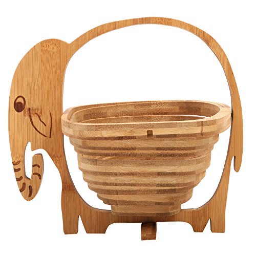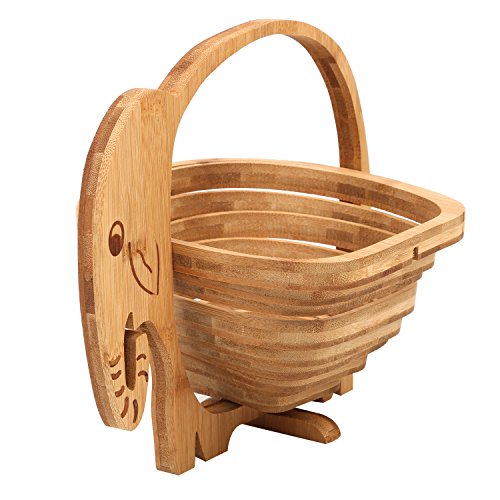 MyGift Natural Bamboo Elephant Shaped Collapsible Fruit Basket Bowl with Handle, Beige