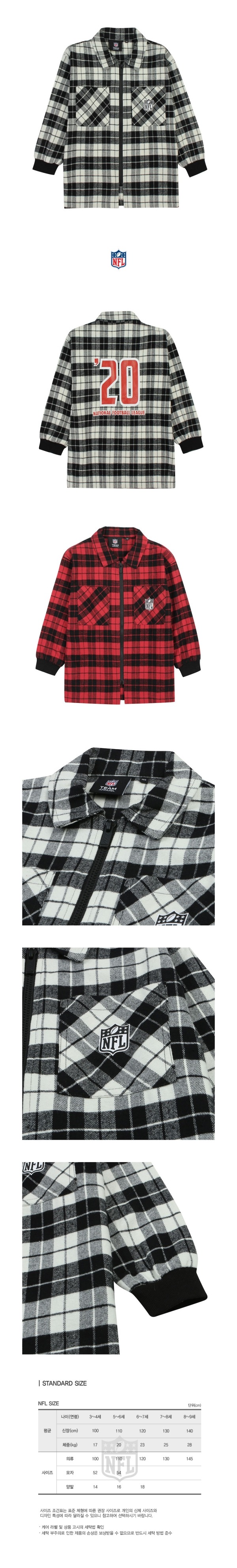 기모가 들어간 체크로 따뜻하게 착용가능한 롱기장 셔츠.앞 NFL엠블럼 나염과 뒷 레터링 나염으로 포인트를 줌.P06과 P07이랑 코디가능.