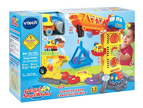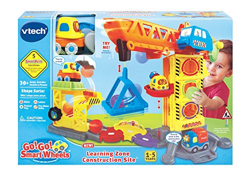 -. Binding : Toy -. Brand : VTech -. EAN : 3417761801000 -. Feature : Enhance your child's creativity with Go! Go! Smart Wheels toddler toys; kids build their own interactive construction toy and race vehicles around the race track for maximum fun / Race track toy has 5 SmartPoint locations to trigger sounds and phrases; press the infant learning toy excavator's light-up button to learn the letter E and the vehicle name / Drop the 3 shape pieces in the shape sorter and rock sorter; toddler toy builds motor skills by turning the crane handle to raise and lower the basket elevator / Race car toy works with all other Go! Go! Smart Wheels and Go! Go! Smart Animals playsets; inspire the imagination and build an entire world with VTech toys / The toy car playset is intended for toddlers 1 to 5 years old; 2 AAA batteries included for demo only, use new batteries for regular use -. IsAdultProduct : 0 -. ItemPartNumber : 80-180100 -. Label : VTech -. Manufacturer : VTech -. Model : 80-180100 -. MPN : 80-180100 -. PackageQuantity : 1 -. PartNumber : 80-180100 -. ProductGroup : Toy -. ProductTypeName : TOYS_AND_GAMES -. Publisher : VTech -. Studio : VTech -. Title : VTech Go! Go! Smart Wheels Learning Zone Construction Site -. UPC : 802838316038 -. Warranty : 90 day warranty against manufacturer defects