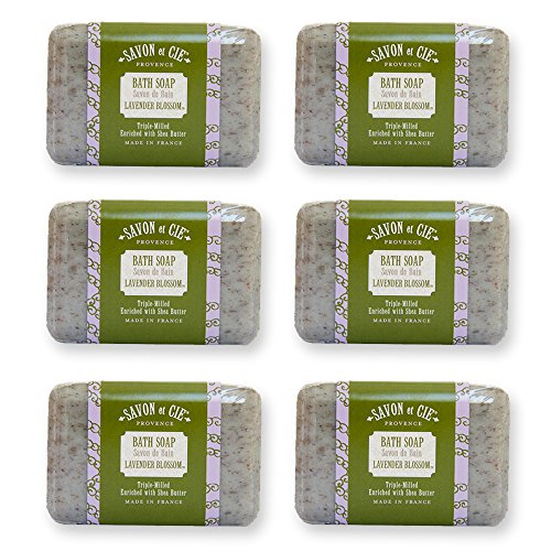 Savon et Cie Triple Milled Soap, French Lavender Blossom, Organic Shea Butter, 100% Pure Vegetable Based, Natural Exfoliating Bath Soap, Made in France, Paraben Free 6 x 7 oz (200g) Value Pack