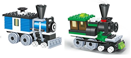 -. Feature : 2 Individual steam engine train sets included in this set a blue locomotive train engine with 59 pcs and a green steam train blocks with 68 pcs set / Each set comes with individual instructions included each block is a tight fit with L.E.G.O and other major brand building bricks / Toy block set encourages budding builders to stretch their imaginative muscles and inspires open ended creativity / L.E.G.O compatible train educational blocks toy set, is recommended for children 6 plus / Building blocks train playset toys will keep your kids busy for long periods of time while learning and creating a pirate war