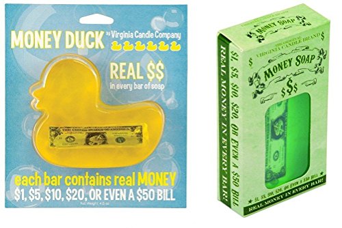Bundle 2 Items, 1 Bar and 1 Duck Money Soap, Real Money in Every Bar From 1 Dollar to 50 Dollars