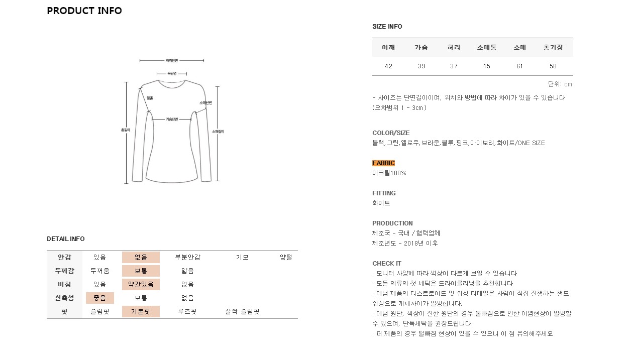 *모든 의류의 첫세탁은 드라이크리닝을 권장해드립니다*