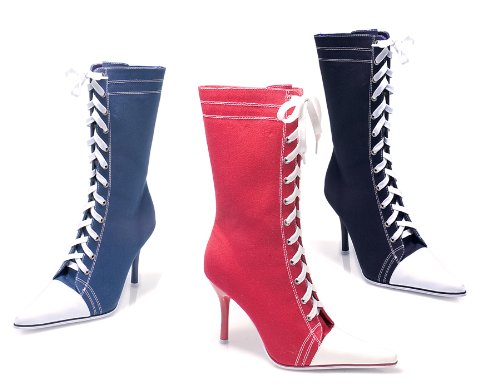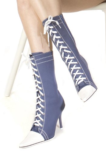 Women's 4.5 Inch Stiletto Heel Sneaker Ankle Boots With Contrasting Pointy Toe (Blue;5)