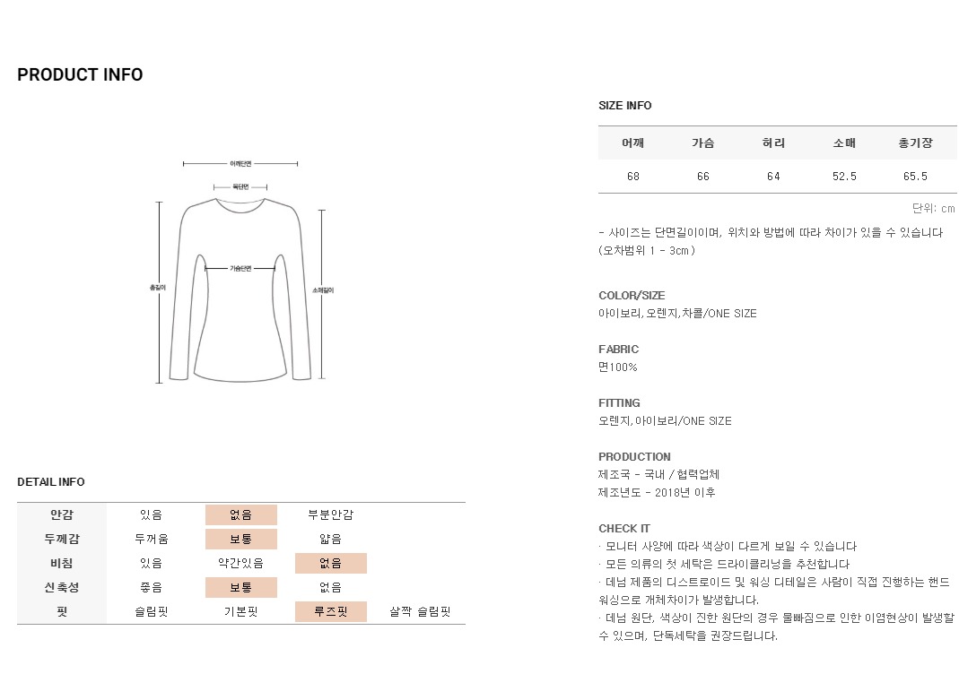 피팅한 제품의 컬러는 아이보리,오렌지 이며